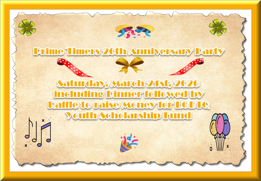 Celebrating Prime Timers 18th Anniversary, Saturday, March the 30th, 2024
